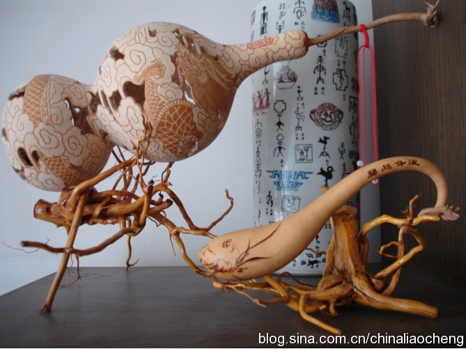 早期雕刻葫蘆大體分為三種:一是“一細(xì)葫蘆”。用料考究,精工細(xì)刻,圖案主要有“八仙人”、“二龍戲珠”及戲劇人物等。二是“二細(xì)葫蘆”。用料稍次,圖案主要是魚、蟲(chóng)、鳥(niǎo)、獸等。三是“花葫蘆”。葫蘆著色后,用刀簡(jiǎn)單地刻出豆腐塊絡(luò)或圖案,正中開(kāi)個(gè)梅花蓋就為成品。產(chǎn)品主要銷往盛產(chǎn)蚰子(蟈蟈)的浙江、云南、貴州、陜西、山西等地,供裝蚰子之用。雕刻葫蘆,制作比較簡(jiǎn)單,地方特色濃,深受人們的喜愛(ài),成為聊城一種獨(dú)特的傳統(tǒng)工藝品。