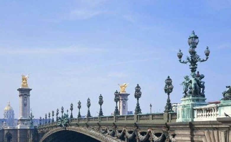 塞納河上架著的橋,據(jù)說共有36座,每座橋的造型都有特點(diǎn),而其中最壯觀最金碧輝煌的是亞歷山大三世橋了。這座橋以其獨(dú)一無二的鋼結(jié)構(gòu)橋拱,將香榭麗舍大街和榮軍院廣場連接起來。建此橋?yàn)閼c祝俄國與法國的結(jié)盟,當(dāng)時是1900年前后,俄法兩國在百年前還是世仇,拿破侖曾揮師攻打俄國,使莫斯科烈火屠城。100年后兩國一笑泯恩仇,而且意味深長地將橋通向拿破侖墓。大橋兩端四只橋頭柱上鍍金的雕像,由長著翅膀的小愛神托著,它的華麗造型和色彩在巴黎特別顯眼。