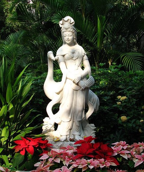 從正門進入公園,是一座書有“屏山鏡樓”四個大字的古色古香的圓形拱門,兩旁是長滿鮮花和翠竹的林蔭小道,參天的榕樹、成片的竹林、盛開的鮮花掩映著樓臺亭閣、曲徑回廊、池塘橋榭、流水飛瀑 、假山怪石。園內(nèi)景點分布得當(dāng),景色錯落有致。假山堆成的奇峰怪石玲瓏剔透、崢嶸百態(tài),涓涓流水從假山頂部跌落 ,形成五疊瀑布,水流又注入假山腳下的小池塘,一位用巨石壘成的古代美女玉立池中,池邊垂柳依依,池內(nèi)水明如鏡,白蓮搖曳,成群的非洲鯽魚游來游去,圓圓的荷葉和橫跨其上呈弧狀彎曲的九曲橋相映成趣。