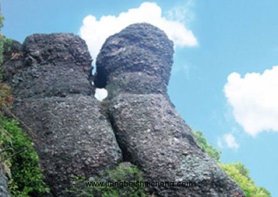 在羅漫山大石牌北端有一尊直徑約一丈,高約五丈的大石柱,它凸出石崖之外,下部同石崖連在一起,上部有分有合。從南邊看猶如一對(duì)年輕的情侶在接吻,從北邊看猶如兩位老人在接吻,所以人們稱之為接吻石,人們認(rèn)為是神仙下凡變成的, 版權(quán)所有山東聊城聊之旅國(guó)際旅行社有限公司,轉(zhuǎn)載必究!是世界上獨(dú)一無(wú)二的奇特景觀,它同中國(guó)古代有關(guān) “伏曦兄妹造人民”的神話故事有關(guān),所以人們稱之為天下第一吻或仙人接吻。人們說(shuō)接吻石是忠貞不渝的愛(ài)情楷模,它在演繹著千百萬(wàn)年流傳下來(lái)的愛(ài)情故事,人們看到它都會(huì)有所感觸,特別是熱戀中的情侶必會(huì)熱血沸騰、情感升華……讓天下有情人為之動(dòng)容!