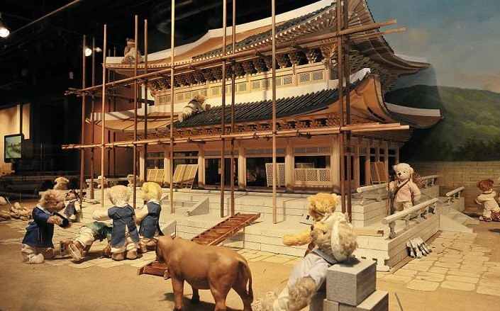 大家都知道南山塔是首爾的代表性建筑,是首爾的至高點。泰迪熊博物館正位于能一眼望盡首爾美麗風(fēng)景的南山首爾塔內(nèi)。 博物館分為兩個館。歷史館和現(xiàn)代館。歷史館—朝鮮時代的首都漢陽到現(xiàn)在的首爾;現(xiàn)代館—狎鷗亭到三清洞的首爾現(xiàn)貌。門票8000韓元/成人。從古至今,我們先去1館-歷史館看看朝鮮時代的泰迪熊們是怎么生活的吧!