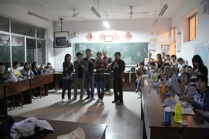 【網(wǎng)宣部】2012年10月12日晚,聊之旅旅行社運營總監(jiān)劉寶平參加聊城職業(yè)技術(shù)學院旅游管理學院2012級旅游管理班“有緣千里來相會”主題文藝晚會,劉老師與同學們一起歌唱,贏得了同學們的一陣陣掌聲。