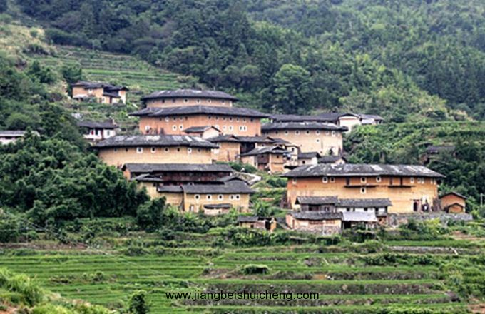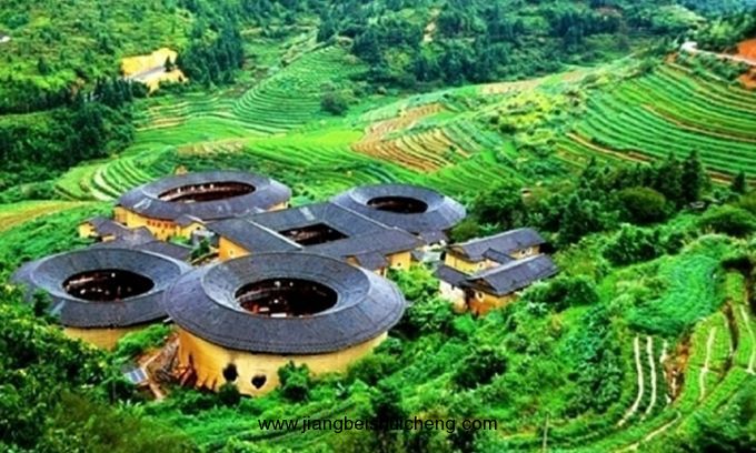 田螺坑土樓群位于福建省漳州地區(qū)南靖縣書洋鎮(zhèn),建縣已有六百多年歷史。與隸屬龍巖地區(qū)的永定交接的書洋、梅林兩鎮(zhèn),大多數(shù)是客家人,其它鄉(xiāng)鎮(zhèn)則以閩南人居多。四座圓樓簇?fù)碇蛔綐?,像是一朵怒放的梅花,美妙絕倫,璀璨奪目,又像是一支氣勢磅礴的五重奏交響曲,在青山秀水間激越地奏響。公路隨著山勢蜿蜒而下。隨著觀看角度的變化,田螺坑景觀魔術(shù)般地不斷變幻,圓樓時而在前時而退后,方樓時而隱蔽時而暴露。來到坡底公路上,抬頭往上一看,田螺坑土樓群猶如布達拉宮橫空出世,巍峨聳立,莊嚴(yán)肅穆,在陽光下一派金碧輝煌。版權(quán)所有,山東聊城聊之旅國際旅行社有限公司,轉(zhuǎn)載必究!這四座圓樓的建造者以順地勢增減一層屋柱高度的方法,成功地在第二層取得了平面,大大方便了居住。