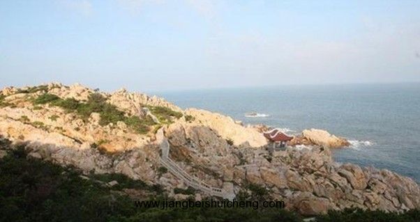 沿著濱海巖石鑿出的一條石徑前行,過了一座石橋,前邊便是“飛戟洞”和“斧劈崖”,幾乎都與媽祖的傳說緊密相連。相傳早年,湄洲灣海域有一條鯉魚多年修煉成精,時常出沒作祟,為害漁民。百姓苦不堪言,只好求助于媽祖。媽祖勸鯉魚精棄惡從善,改邪歸正。鯉魚精不聽,繼續(xù)一意孤行。媽祖派龍?zhí)忧叭ナ辗?。龍?zhí)优c鯉魚精交手沒幾個回合就敗下陣來。媽祖左右將千里眼和順風耳看在眼里,急在心里。千里眼揮起斧頭猛力從云中砍下去,鯉魚精沒有傷著,卻把這海巖齊刷刷地切開,成了“斧劈崖”;順風耳操起方天戟扎下去,扎出一個洞,就是“飛戟洞”。龍?zhí)印⑶Ю镅?、順風耳以三戰(zhàn)一,仍難以取勝。媽祖只好召雷公來助戰(zhàn)。雷公看到“三戰(zhàn)一”斗得正酣,便瞄準鯉魚精的要害,一錘子打下去,便把鯉魚精打趴在地,成了“鯉魚十八節(jié)”景點。從“霧海尋燈”亭出來,到“讀海臺”,最后來到“龍洞聽潮”。如果是夏天,這里可是納涼的好地方,即使是炎炎酷日,這里也是清沁涼爽。坐下來歇息,聽海浪輕輕拍打礁石的聲音,令人心曠神怡。順著石階下去,又是一個人間仙境,仿佛與喧囂的塵世驀然隔絕。抬頭東望,眼前豁然開朗,大海煙波浩淼,一望無垠。如果是秋冬季節(jié),又恰逢滿潮時分,那狂風巨浪拍擊巖的轟鳴聲,那此起彼伏的涌浪瀑出的浪花,激起的泡沫,讓懦弱者膽戰(zhàn)心驚,讓勇敢者激情奔放、壯志滿懷。人們在這里都會充分感受到大自然的神奇莫測,大海的千變?nèi)f化。再高明的藝術(shù)家面對大海的變幻也會感到藝術(shù)手段的貧乏和無奈。