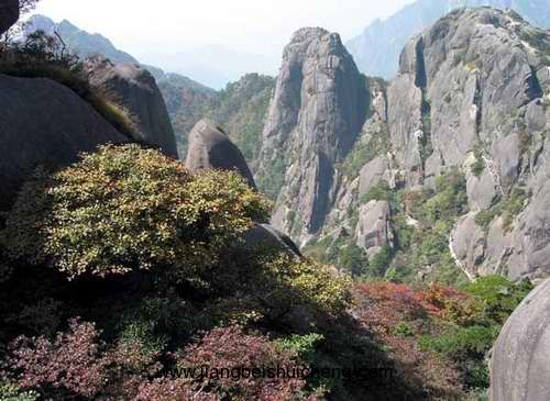 桃花峰位于黃山南端,西連云門峰,與紫石峰隔湯泉溪相望,為36大峰之一,海拔1460米。此峰土質肥沃,草木繁盛。早先峰上多桃樹,人稱“十里桃花峰”,至今仍盛開不衰。每年3~4月,桃花山峰麓層層開至峰頂,如同錦霞,分外艷麗。前人曾有詩形容:“花開十萬樹,峰似繹霞披?!被ㄖx之時,滿山紅瓣流入桃花溪,版權所有,山東聊城聊之旅國際旅行社有限公司,轉載必究!名曰“桃花湯”。峰便由此而得名。清黟縣人、雍正間舉人、名士胡與高有詩曰:“山頭桃花開,山中玉女笑。帝鄉(xiāng)無盡春,日日斜陽照?!痹娭袑⑻一ㄊ㈤_和玉女歡笑糅在一起,給桃花峰抹上了一層春色長駐的浪漫色彩。關于峰上的桃樹為何人所栽,有兩種傳說:一說當年軒轅黃帝來黃山煉丹時,看到桃花峰上缺花少木,乃令眾臣遍栽桃樹,點車上觀之,更能看出它獨臥壑外,不與眾峰相接。故有詩云:“一峰貪枕自離群,萬古山中臥白云。盛世人皆爭貢獻,汝甘壑外不人群?”
