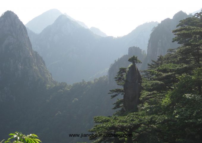 北海散花塢左側(cè),有一孤立石峰,形同筆尖朝上的毛筆,峰頂巧生奇松如花,故名“夢(mèng)筆生花”。