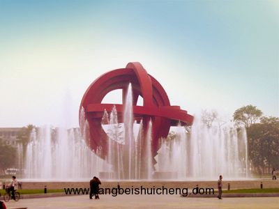 和平廣場(chǎng)由主體雕塑所在的中心區(qū)、浮雕墻、小品雕塑“書”和音樂(lè)噴泉組成的次中心區(qū)、草坪區(qū)、休息區(qū)以及停車場(chǎng)組成,是以點(diǎn)、線、面的現(xiàn)代構(gòu)圖手段將主景球體、雕塑墻、大面積草坪組合成一個(gè)具有科技、文化品位的廣場(chǎng)。綜合反映了合肥作為科技城以及正在向現(xiàn)代化大城市邁進(jìn)的風(fēng)采,既富有濃郁的合肥地方特色,又充盈著時(shí)代感,以巧妙的構(gòu)思和較高的科技水準(zhǔn)塑造了面向21世紀(jì)的城市廣場(chǎng)空間。廣場(chǎng)的主景是球體,名叫“天地間”,是廣場(chǎng)的主體雕塑。版權(quán)所有,山東聊城聊之旅國(guó)際旅行有限公司轉(zhuǎn)載必究!高21米,以鮮艷奪目的紅色為基調(diào),結(jié)合中國(guó)古代渾天儀的造型特征,采用現(xiàn)代藝術(shù)造型方式,用交錯(cuò)旋轉(zhuǎn)的環(huán)結(jié)構(gòu),既使人感到它有強(qiáng)大的內(nèi)聚力,又使人感受到它剛勁的運(yùn)動(dòng)張力。它猶如一輪紅日升起在合肥的東方,從而以強(qiáng)烈的時(shí)代氣息展示了現(xiàn)代合肥的風(fēng)貌。