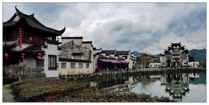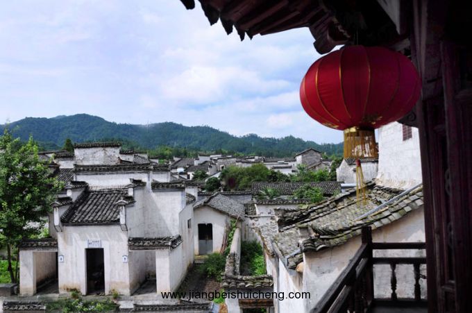 西遞位于安徽省黟縣東南部,地理坐標(biāo):東經(jīng)117°38′,北緯30°11′,村落面積12.96公頃。
