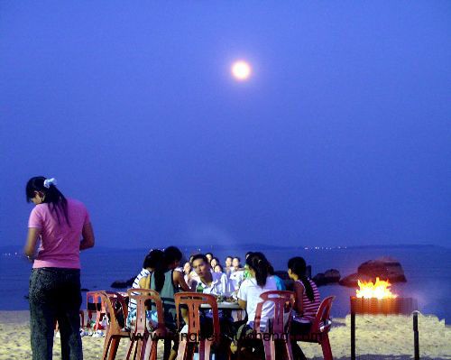 而云南傣族在中秋之夜,同樣盛行“拜月”風(fēng)俗。傣族傳說,月亮是天皇第三個兒子巖尖變的。巖尖是個英勇剛強(qiáng)的青年,他曾率領(lǐng)傣族人民打敗過敵人,贏得了傣族鄉(xiāng)親的愛戴。后來,他不幸死后,變成了月亮,升向天空,繼續(xù)發(fā)出柔和的月光,在黑暗中給傣族人民帶來光明。每逢中秋節(jié)這天,小伙子一清早就帶上火藥槍上山打火雀、野雞,獵取節(jié)日野味。姑娘、媳婦們忙著到湖邊,池塘里抓魚。他們都忙著準(zhǔn)備節(jié)日的晚餐。老阿媽則忙著舂糯米,做大小不同的食物,四只桌角上各放一個糯米圓餅,每個餅上插一炷冷香。待到月亮從山林上空一升起來,就點(diǎn)燃冷香,全家大小開始“拜月”。然后,對空鳴放火藥槍,以示對英雄巖尖的敬意。最后,全家老小歡樂地圍坐在小方桌旁,品嘗食物,談笑賞月,盡興方散。
