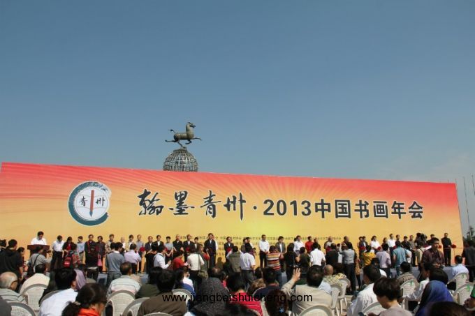 本屆書畫年會(huì)由中國(guó)美協(xié)、中國(guó)書協(xié)、中華兩岸文化藝術(shù)交流基金會(huì)、中央數(shù)字電視書畫頻道、山東省文學(xué)藝術(shù)界聯(lián)合會(huì)提供學(xué)術(shù)支持,中國(guó)書法家協(xié)會(huì)展覽中心、中國(guó)書畫報(bào)社、山東省美術(shù)家協(xié)會(huì)、山東省書法家協(xié)會(huì)主辦,濰坊市委宣傳部、青州市人民政府承辦,市委書記、市人大常委會(huì)主任孫忠禮主持了開幕式。