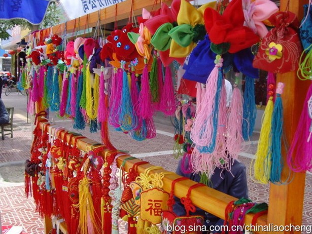 端午節(jié)佩香囊,不但有避邪驅(qū)瘟之意,而且有襟頭點綴之風(fēng)。香囊內(nèi)有朱砂、雄黃、香藥,外包以絲布,清香四溢,再以五色絲線弦扣成索,作各種不同形狀,結(jié)成一串,形形色色,玲瓏奪目。