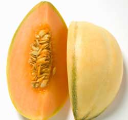 甜瓜又稱甘瓜或香瓜。它是夏令消暑瓜果,其營養(yǎng)價(jià)值可與西瓜媲美。據(jù)測定,甜瓜除了水分和蛋白質(zhì)的含量低于西瓜外,其他營養(yǎng)成分均不少于西瓜,而芳香物質(zhì)、礦物質(zhì)、糖分和維生素C的含量則明顯高于西瓜。祖國醫(yī)學(xué)確認(rèn)甜瓜具有“消暑熱,解煩渴,利小便”的顯著功效。因甜瓜性寒,有吐血、咳血、十二指腸及胃潰瘍、慢性腸炎、脾胃虛寒、寒積腹脹或腹痛腹瀉、小便頻多、心臟病等人慎用或忌用。正常健康的人也不宜大量常吃,因甜瓜水分很多,吃太多在胃里會(huì)沖淡胃液,傷胃引起消化不良或腹痛腹瀉。