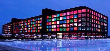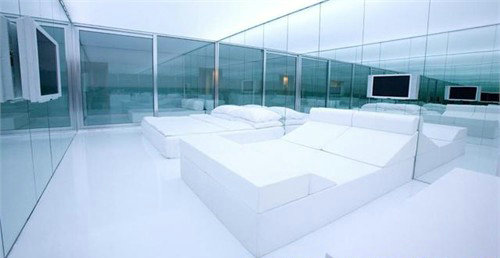 位于土耳其Antalya省的Adam &Eve Hotel(亞當和夏娃酒店),被歐洲導(dǎo)游稱做“全世界最性感的旅館”。土耳其的設(shè)計師Eren Talu利用簡單而柔和、充滿光澤的材料,并透過有色鏡子及隱藏的吸音系統(tǒng)營造出讓人目眩神馳的效果。