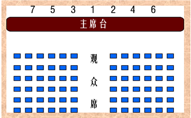 是不是感覺(jué)很復(fù)雜,被奇偶數(shù)給繞暈了呢?其實(shí)只要記住一個(gè)規(guī)律,那就是“先排1號(hào)領(lǐng)導(dǎo),2號(hào)領(lǐng)導(dǎo)永遠(yuǎn)在Ta左手位置,再按左右順序排下去就好了”。