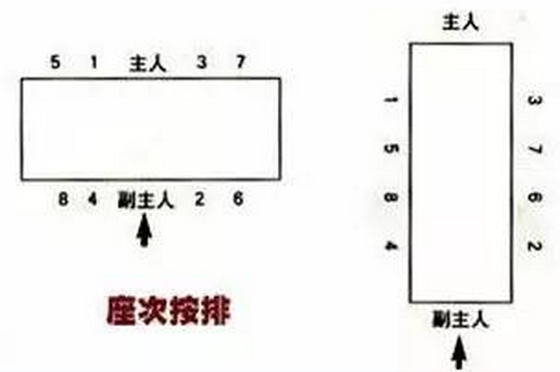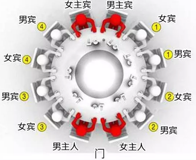 以右為尊(男主賓坐于女主人右側(cè),女主賓坐于男主人右側(cè))