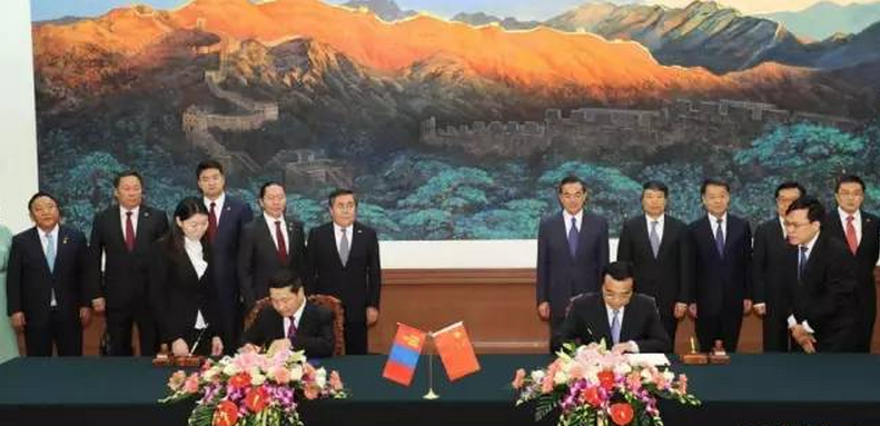 2013年10月25日,中國(guó)國(guó)務(wù)院總理李克強(qiáng)同蒙古國(guó)總理阿勒坦呼亞格在北京人民大會(huì)堂共同簽署《中蒙戰(zhàn)略伙伴關(guān)系中長(zhǎng)期發(fā)展綱要》。