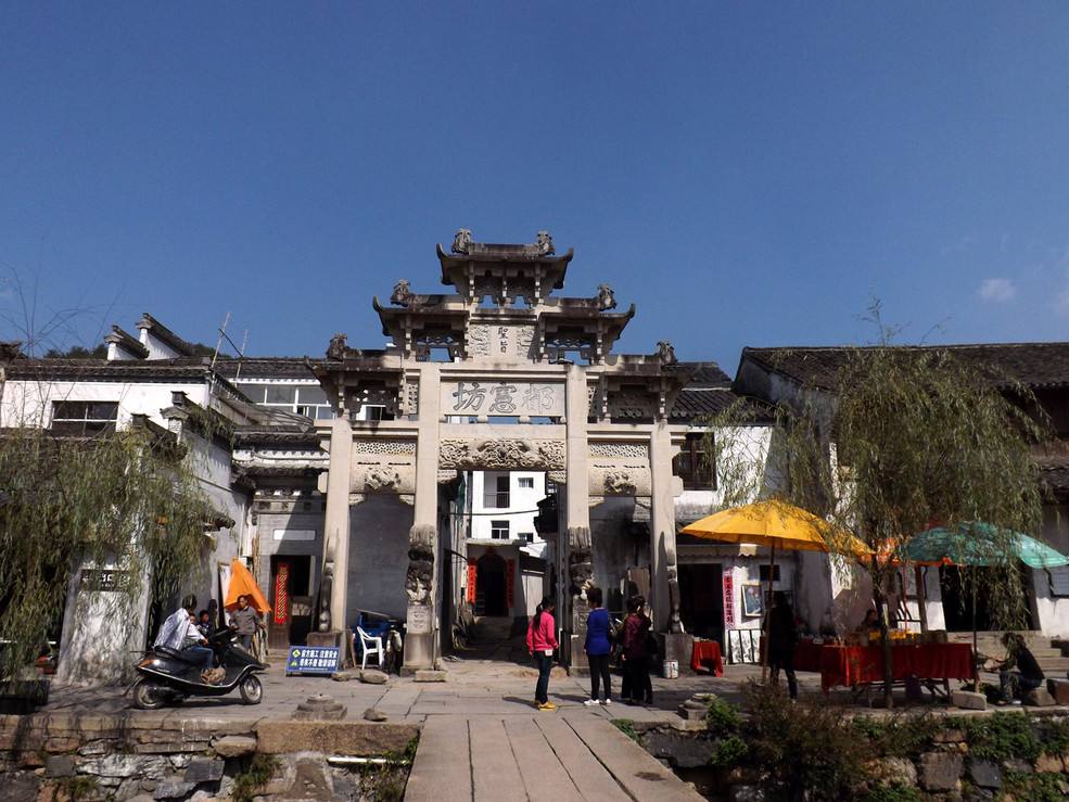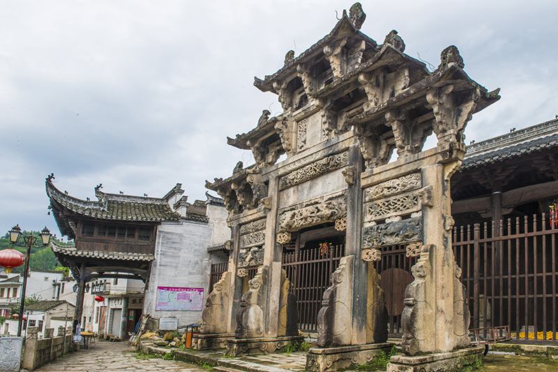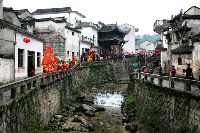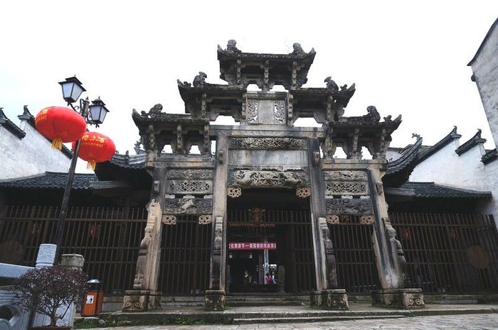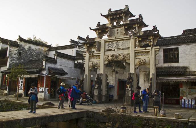 村中有祠堂、廟宇、橋梁各一百零八座;有孝子坊、貞節(jié)坊、官宦牌坊等十八座。古村老式民居鱗次櫛比,黝黑的屋瓦,淺灰的馬頭墻連成一片。大部分房子還都住人,可以像串門般地隨意進入居民家中轉悠。主人早已習慣,自管自忙活著;多有善意的笑容,但并不以特別的關注,使人更感自在親切。