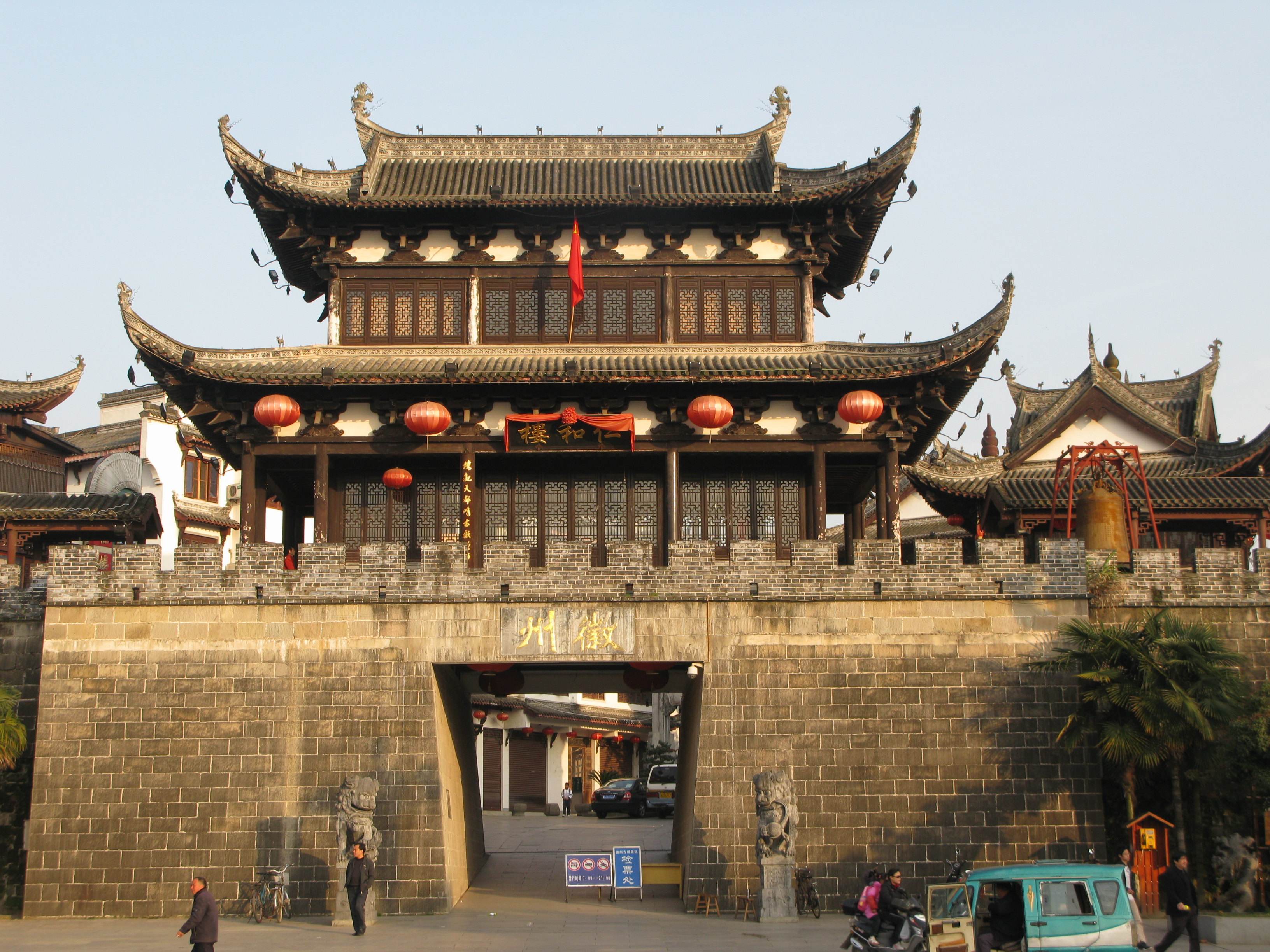 又名歙縣古城,古稱新安郡。古城始建于秦朝,自唐代以來,一直是徽郡、州、府治所在地,故縣治與府治同在一座城內,形成了城套城的獨特風格?;罩莨懦鞘侵袊蟮胤綄W派之一的"徽學"發(fā)祥地,被譽為"東南鄒魯、禮儀之邦"?;罩莨懦欠謨瘸?、外廓,有東西南北4個門。此外還保留著甕城、城門、古街、古巷等。城內景區(qū)包含徽園、漁梁壩、許國石坊、斗山街、陶行知紀念館、新安碑園、太白樓等七處?;罩莨懦鞘潜4嫱旰玫?/span>中國四大古城之一,1986年,被國務院列為國家歷史文化名城,2014年,被列入國家5A級景區(qū)古徽州文化旅游區(qū)的組成部分。