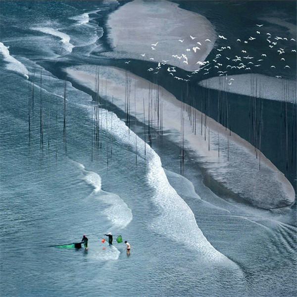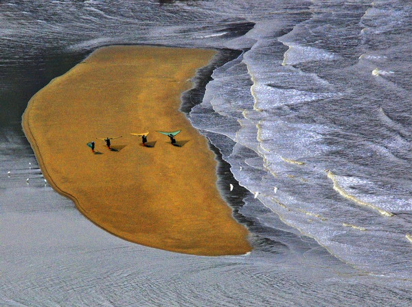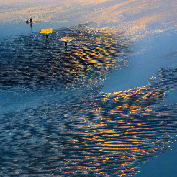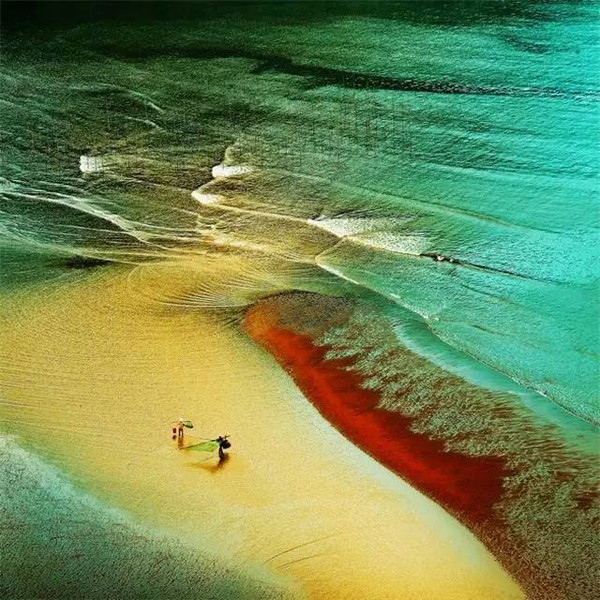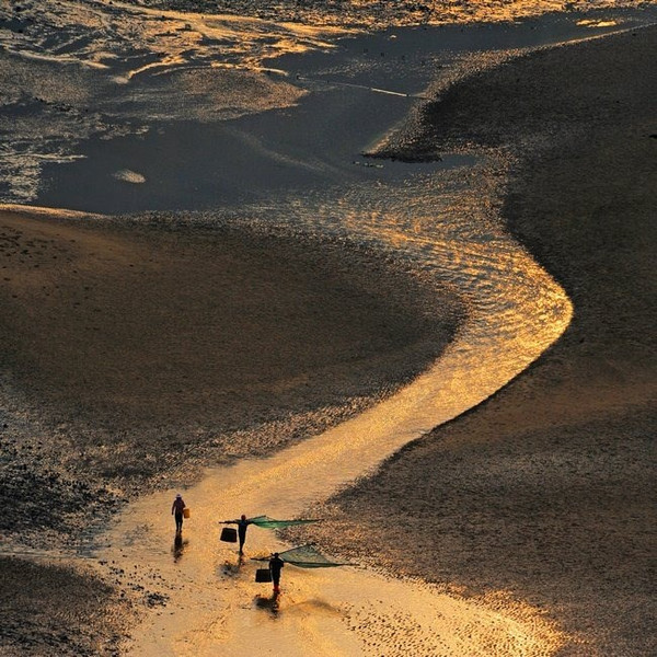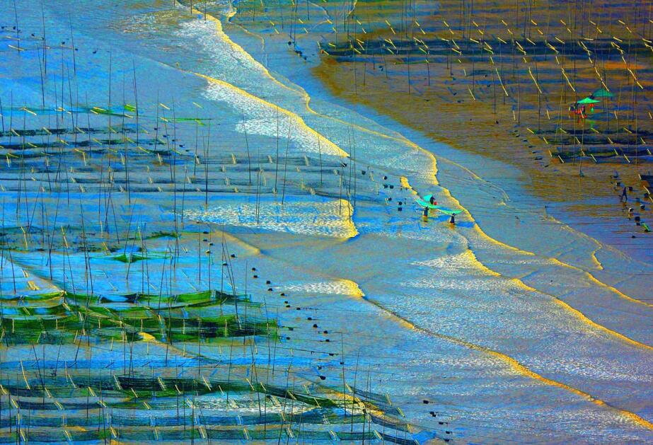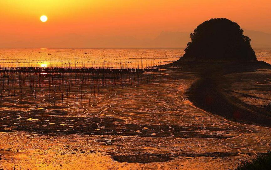 這里四季的潮汐變化、天光云影、原生態(tài)的海事活動,讓美麗神奇的海域瞬間迥異奇妙無比。那詭譎神秘的滿海竿影,那夢幻般的海上家園,那鷗鳥掠過浪尖撲騰灘涂,那金色沙灘褐色礁叢,那港灣遠空的一抹紅云束光,海上日出日落……都是那樣靈動令奇絕。
