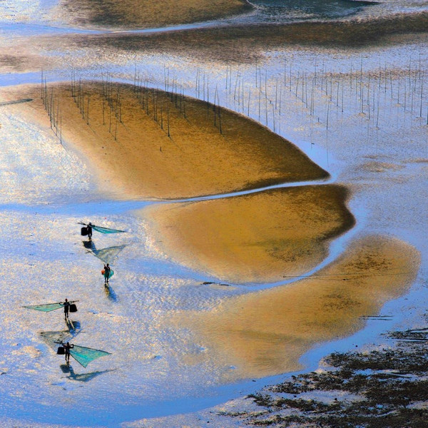 來霞浦拍灘涂主要講究的是光影、氣候和潮汐和參照物