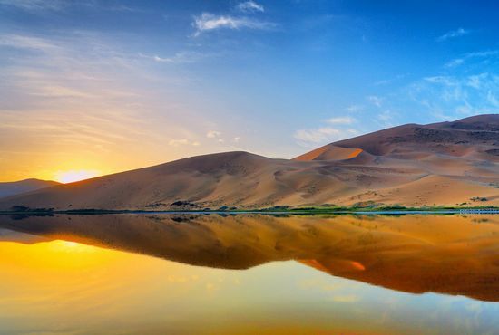 早乘車赴“落霞與孤鶩齊飛,秋水共長天一色”的——【居延海】(車程1小時,約50公里,游覽時間1.5小時),居延是匈奴語,《水經注》中將其譯為弱水流沙,藍天、碧水、野鳥、蘆葦蕩讓人感慨大自然的力量,無法想象在茫茫戈壁沙漠中的鑲嵌的綠寶石擁有這樣的震撼!可以帶點面包做鳥食,觀海天一色,海鳥與美景相隨!游覽后乘車赴——【弱水·金沙灣】(車程80分鐘,約70公里,游覽時間2.5小時)這里是整個額濟納旗39萬畝胡楊林中胡楊林最全玩法的經典圣地,,弱水河畔胡楊、沙漠胡楊林原生態(tài)的野性之美,百媚胡楊千古情,弱水三千只飲一瓢的忠貞愛情保佑著所有到過這方土地的人們。這里的五湖、四島、九重林、黑天鵝、駝群、馬群、羊群、胡楊人家形成了一條亮麗的風景彩虹,專場游覽,沒有擁擠的人頭,是純粹感受胡楊之美的最佳圣地。在這里您可以去純粹的胡楊人家喝茶聊天,可以騎著駱駝游蕩在沙漠胡楊林中感受一下絲綢之路上的駝客,也可以坐上越野車來上一次沙漠探險做一回越野英雄。后乘車赴后乘車赴前往敖倫布拉格鎮(zhèn)(原名六團),抵達后宿敖倫布拉格小鎮(zhèn)。
