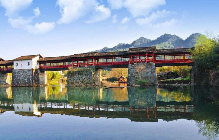 早餐后乘坐旅游大巴車赴【中國最美的廊橋——宋彩虹橋】彩虹橋歷史悠久,建于南宋,距今已有八百多年,是古徽州最估老、最長的廊橋,被眾多媒體譽為“中國最美的廊橋”,這座橋取唐詩“兩水夾明鏡,雙橋落彩虹”的意思取名,彩虹橋周圍景色優(yōu)美,青山如黛,碧水澄清,【乘坐彩虹橋游船】瀏覽四周風光,會讓人深深體驗到婺源之美。