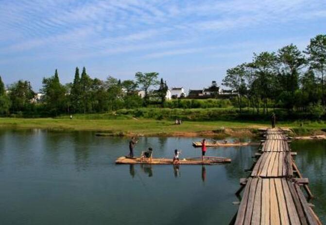 【“田園牧歌”式的地方、《閃閃紅星》拍攝地——樟村】婺源的樟村不是一個很大的景點,但是這里卻是攝影者愛好的天堂,它的精髓就是這里有一片幽靜的河面,河邊有一片靜靜的草地,最吸引人的地方就是在這優(yōu)雅的環(huán)境里,有一座婺源最長的木板橋。它吸引了無數(shù)的游人前來攝影寫生,靜靜地坐在河邊發(fā)呆。