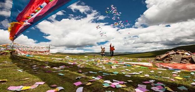 8、祈福體驗(yàn),掛經(jīng)幡,撒龍達(dá),為家人祈福。