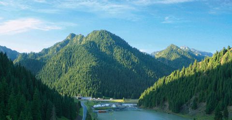 天山天池----古稱"瑤池",是以高山湖泊為中心的自然風(fēng)景區(qū);