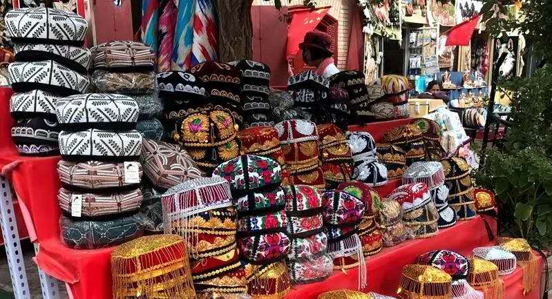 小貼士:來旅游的朋友可以讓花帽店的老板為你挑選一頂花帽,戴著花帽游著古城,當一次“兒子娃娃”和“新疆古麗”。