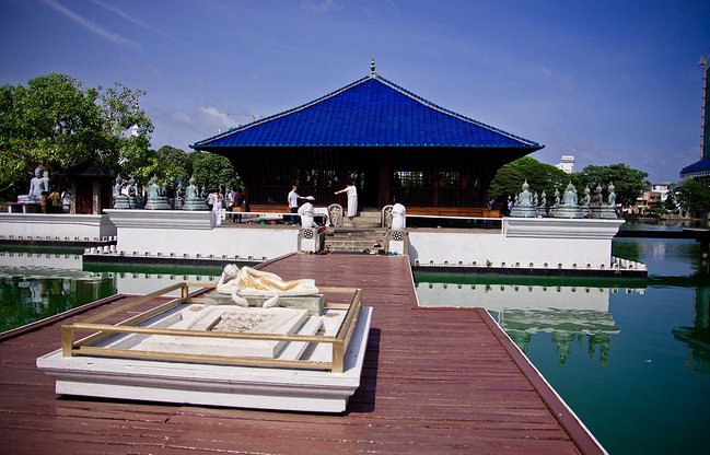 【佛牙寺】佛牙寺位于圣城康提中心的美麗康提湖邊,建于17-18世紀(jì)。珍藏著斯里蘭卡的鎮(zhèn)國之寶-佛祖釋迦牟尼僅存于世的兩顆靈牙舍利其中的一顆。佛牙寺是整個宮殿建筑群的一個組成部分,四周有圍繞的護(hù)城河,角樓護(hù)衛(wèi)。還有4個守護(hù)神的神廟,包括那特哈神廟(聯(lián)合國世界文化遺產(chǎn)遺址),卡塔臘加碼神廟,瓦斯怒神廟和帕特提尼神廟。佛牙寺是佛教世界神圣的殿堂。據(jù)資料記載,早期由維馬拉達(dá)王修建,現(xiàn)在的佛牙寺是克里蒂斯里亞西哈王時期所建。