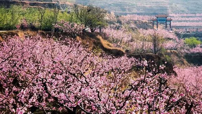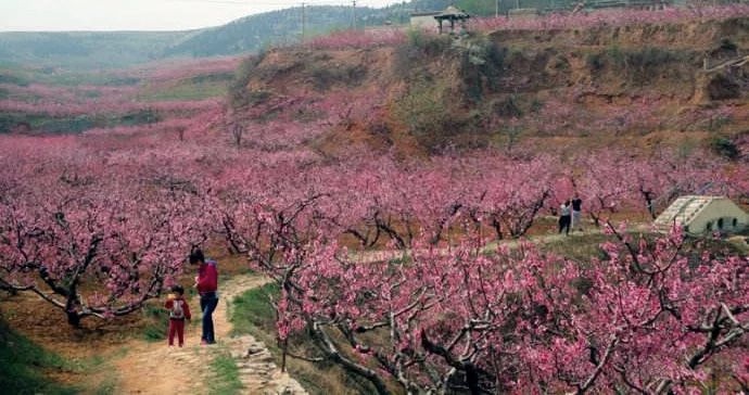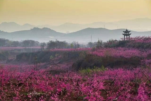 肥城劉臺(tái)桃花源的萬畝桃花競(jìng)相綻放