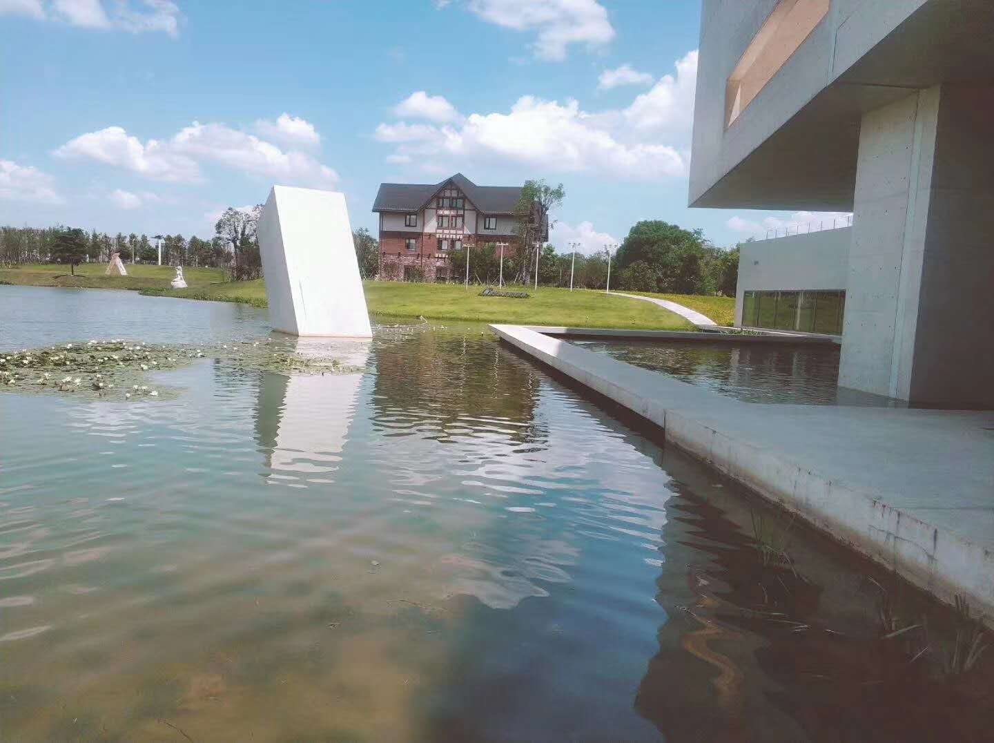 極簡的米白色外觀,建筑設計感十足,每一個角落都是藝術,不管怎么拍都很容易出片。極簡式的幾何形建筑棱角分明,加上水面的倒影,仿佛模糊了虛與實的界限。再加上性冷淡的色彩,拍出來的照片想不好看都難。
