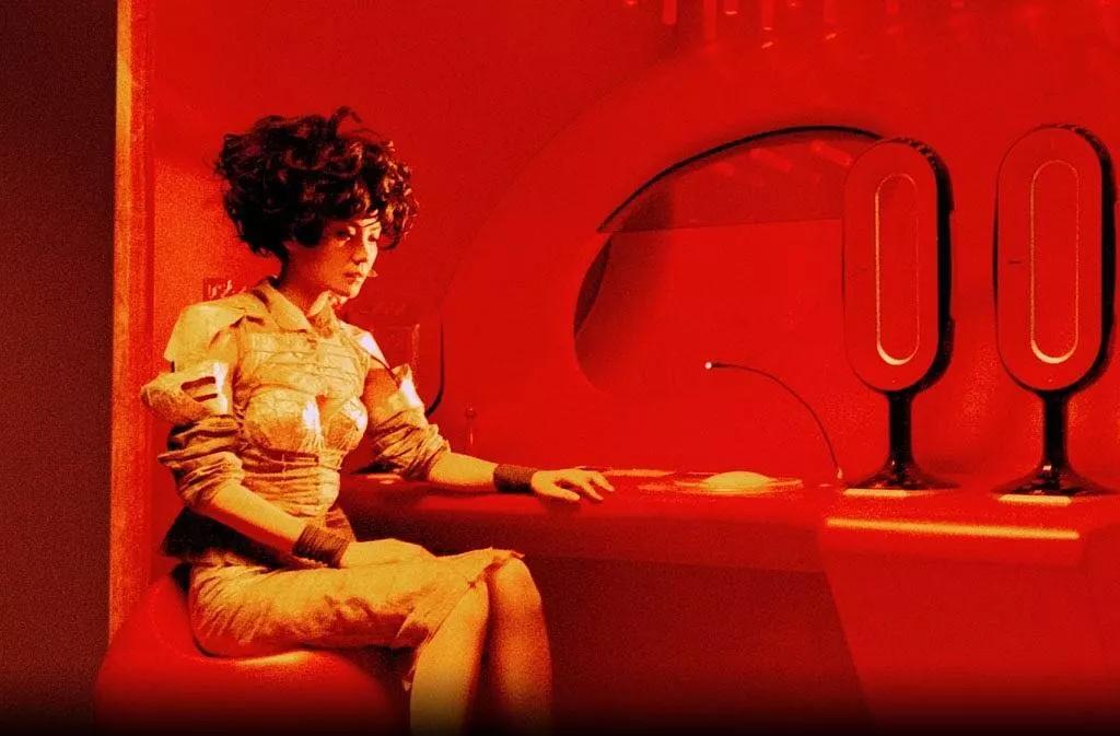 電影《2046》是一部極具觀賞性的藝術(shù)電影。氛圍的營造和情緒的流露是導(dǎo)演表達(dá)的關(guān)鍵。影片在影像色彩的呈現(xiàn)上,是香艷的,甚至媚俗的。大紅色窗簾、床單與明綠色墻面、長裙強(qiáng)對(duì)比的配色、處處流露出女主人公的都市欲望與愛恨情迷。燈紅酒綠下的鮮明色彩與暗淡的街角墻上斑駁深色的對(duì)比,塑造人物時(shí)用的深邃色調(diào)都刻化了主人公在當(dāng)時(shí)環(huán)境下的生存狀態(tài):迷失自我下的內(nèi)心孤寂。