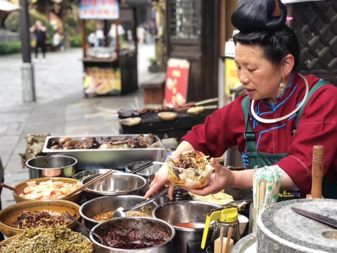 小鎮(zhèn)的街道上,早早的就擺起了長(zhǎng)長(zhǎng)的桌子,苗家同胞忙碌的準(zhǔn)備著餐食,旅行的人們也安耐不住。