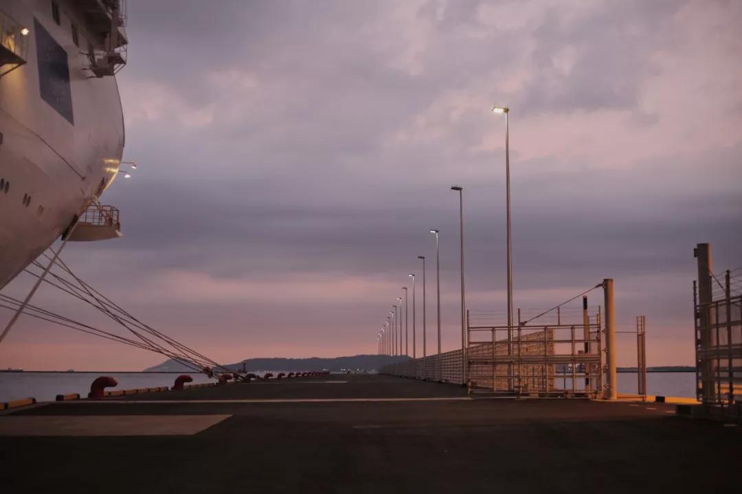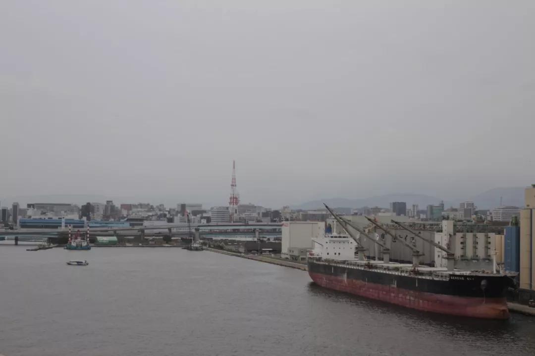 在太平洋上漂浮了兩日,我們抵達(dá)福岡博多港。集裝箱齊齊??吭诖a頭上,大小船只在水面平靜游弋,靠港貨輪發(fā)出低沉長(zhǎng)鳴,清晨的港口已經(jīng)奏響忙碌的樂(lè)章。