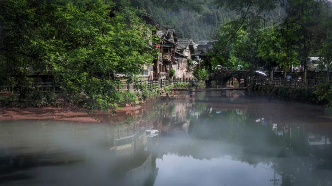 古鎮(zhèn)依山傍水,有著濃濃的田園風光,至今還保留著許多明清時期的吊腳樓式建筑,街道主要是呈“井”字形布局,寓意“井中有水,水火不容”,以水制火,祈福古鎮(zhèn)平安。