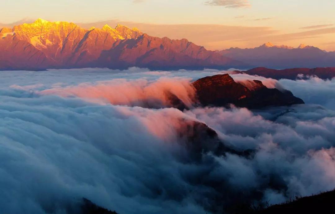 牛背山有六絕,即云海,日出,夕陽,貢嘎雪山,佛光,星軌,站在山頂你不僅能把天府之國的名山峻嶺盡收眼底,運氣好的話看到佛光,日照金山。