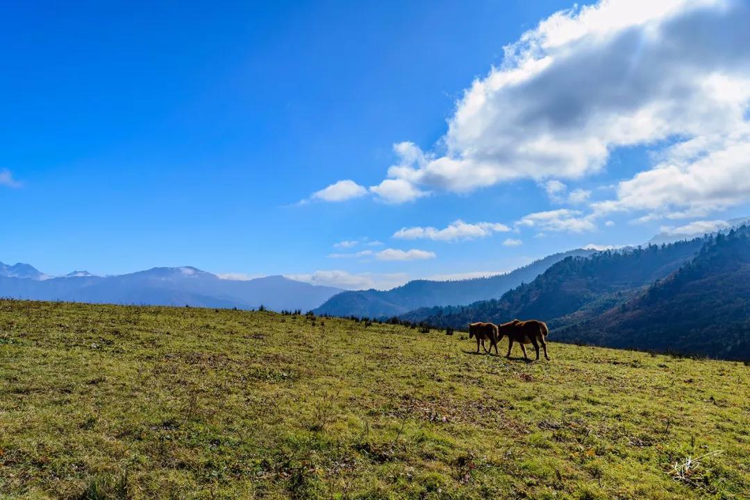 神木壘一年四季風景秀麗,它不僅有藏族的美麗淳樸,你漫步其中,隨處可見散養(yǎng)于森林草地上的牛馬羊群,加上暖暖的時光,輕輕的風,那畫面極度舒適。