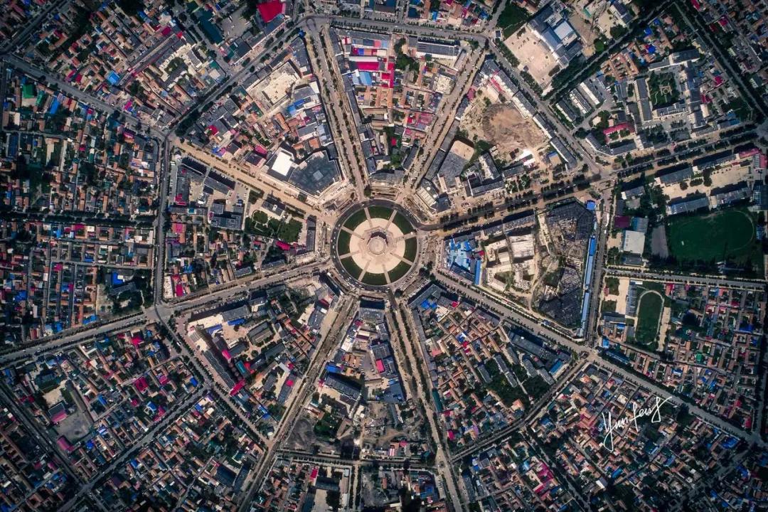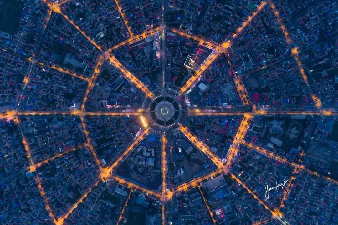 八卦城是按照《易經(jīng)》來建造的,以城區(qū)中心廣場為“陰陽”兩儀的太極圖向外延伸,按照八卦方位向外輻射出8條主街,每條街長1.6公里,每隔360米設(shè)一條環(huán)道連通。