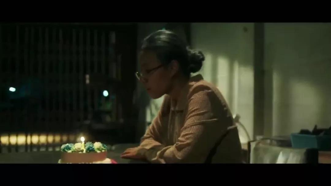 發(fā)完信息,母親一個人坐在桌前,陪著她的只有插好蠟燭的蛋糕。
