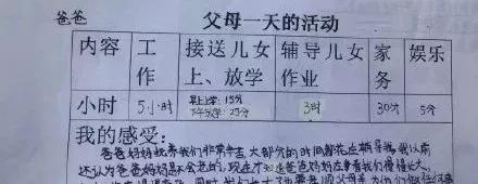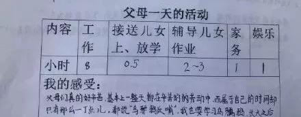 “調查父母的時間”這項特殊的作業(yè),讓很多孩子知道原來平時陪伴自己最久的是父母...