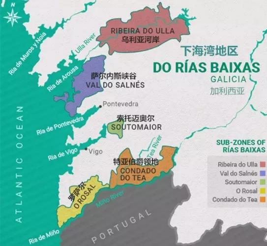 最近20年聲名鵲起,成為現(xiàn)象級(jí)產(chǎn)區(qū)的下海灣(Rías Baixas)位于西班牙西北部。這里吹拂著大西洋冷冽而潮濕的海風(fēng),獨(dú)特的Xabre 花崗巖土壤,成為特色白葡萄品種阿爾巴尼諾(Albari?o)生長的天堂。