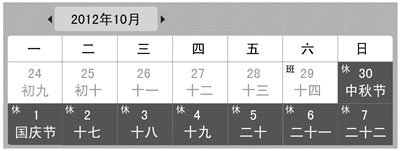 之前《國務院辦公廳關(guān)于2012年部分節(jié)假日安排的通知》中已對今年中秋國慶假期的放假調(diào)休日期做出了具體安排。其中中秋節(jié)和國慶長假合并安排為8日假期,自9月30日至10月7日。之前曾在2009年出現(xiàn)過一次中秋國慶合并的8天假期。