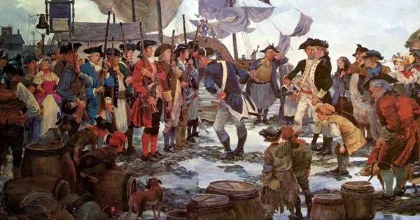 此時,作為北美地區(qū)的首富,美國最大的走私頭子,又同樣厭惡英國人的漢考克被塞繆爾·亞當斯找上,邀請其共同抗英。一番討論之后,漢考克出錢,亞當斯出腦子二人決定聯(lián)手策劃革命。這也使得英王喬治三世手上的革命黨黑名單中,漢考克赫然排在首位。