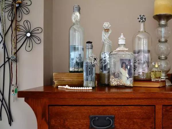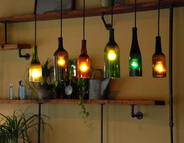 小心地在酒瓶上鉆幾個(gè)小洞,然后鑲嵌進(jìn)一些小燈。關(guān)上燈,感覺像是過節(jié)一樣。