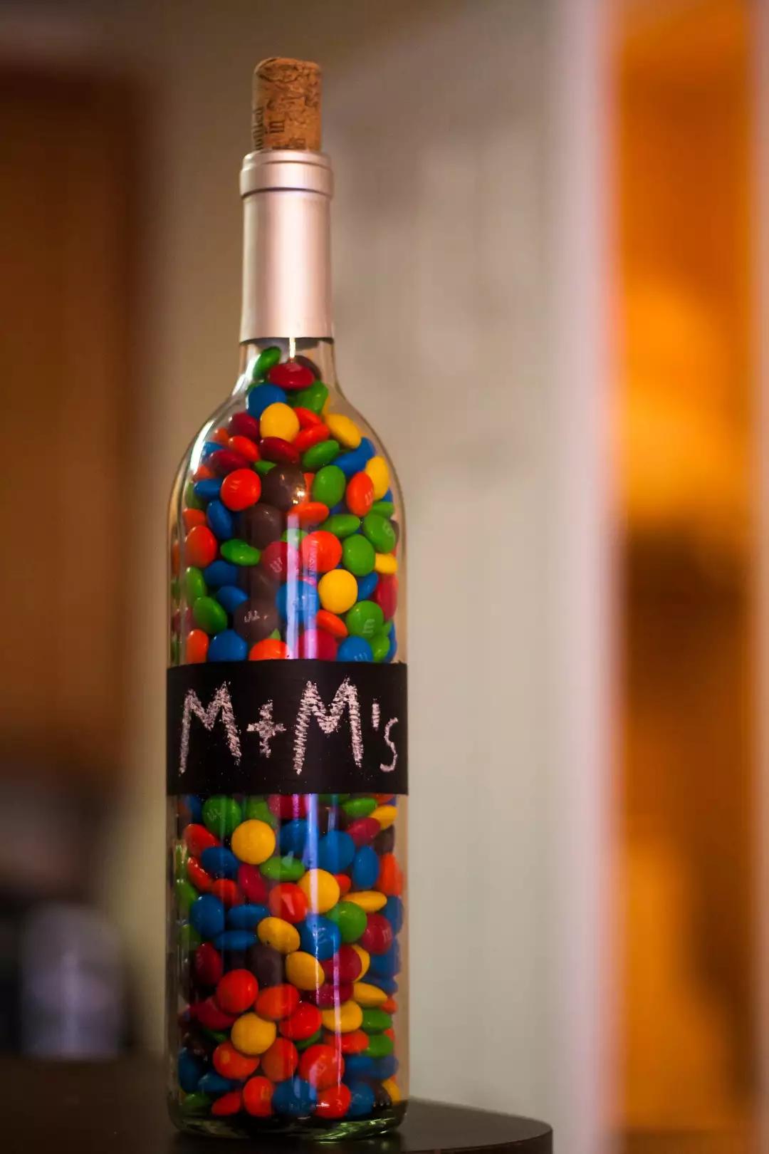 如果覺得酒瓶過于單調(diào),可以在瓶中倒入想要顏色的油漆或者在酒瓶上貼一些粘紙。