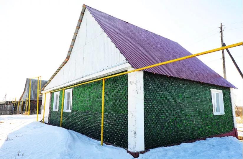 用酒瓶建立一間屋子,這絕對是酒瓶DIY界的超高級玩家。在俄羅斯城市車?yán)镅刨e斯克就有這樣一位神人,使用12000個(gè)空香檳瓶,歷時(shí)三年,建造了這個(gè)99平方米的房間。