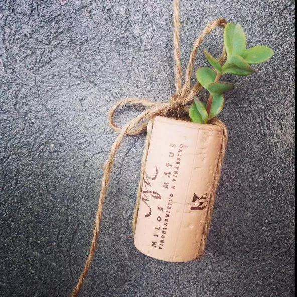 在軟木塞上戳一個(gè)小洞塞回酒瓶中,這樣瓶子就形成了一種持續(xù)不斷的滴灌環(huán)境,花盆中可時(shí)刻保持濕潤。