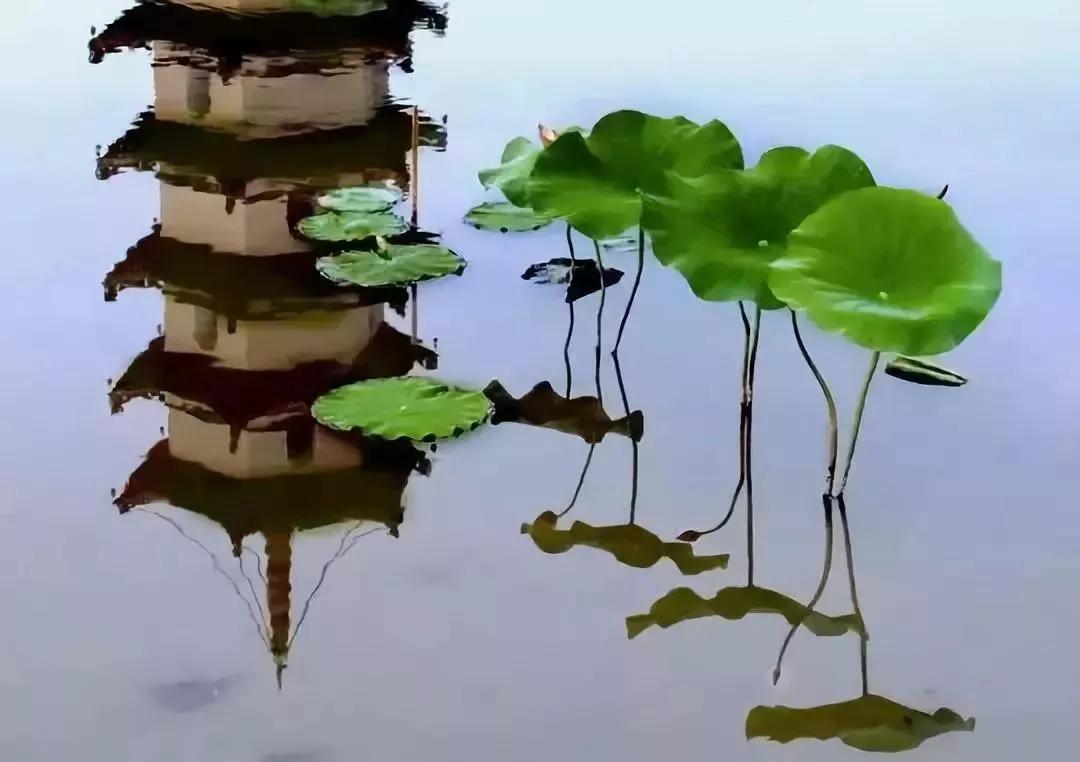 疏朗的荷塘,婷婷玉立的荷葉,微風(fēng)吹來微微翻動,最具中國風(fēng)的荷塘,滿是詩情和畫意,巧妙地利用水中倒影,容易構(gòu)圖一種中國畫的意味。